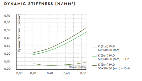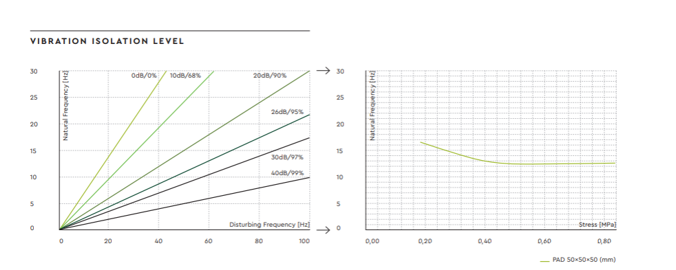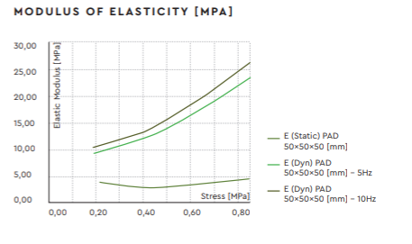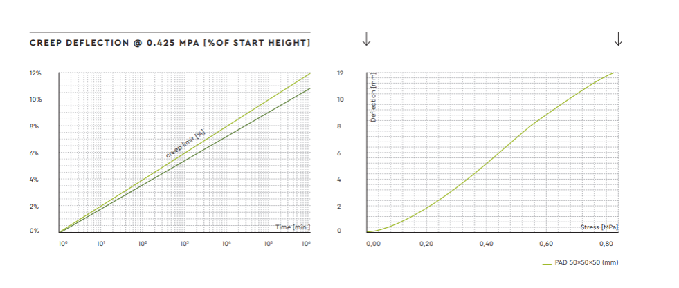 Độ bền bỉ cao, Khả năng cách ly rung tối ưu trong khi hấp thụ nước và tốc độ trượt (creep) thấp.
